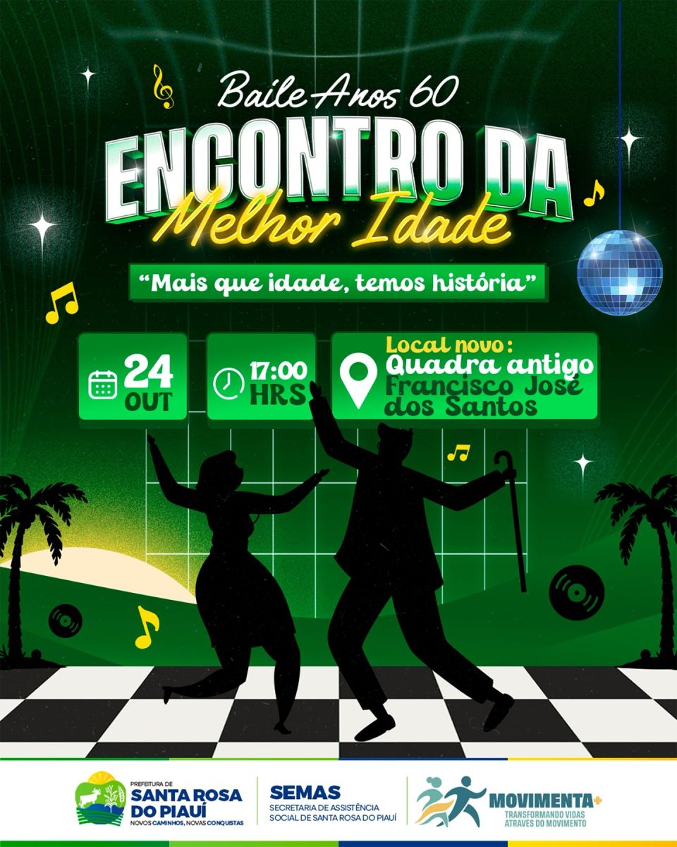 A Melhor Idade está convidada para participar do Baile Anos 60, uma noite repleta de músicas que marcaram época e muita animação. Os participantes poderão vestir seus melhores looks retrô e aproveitar momentos de socialização, dança e alegria.