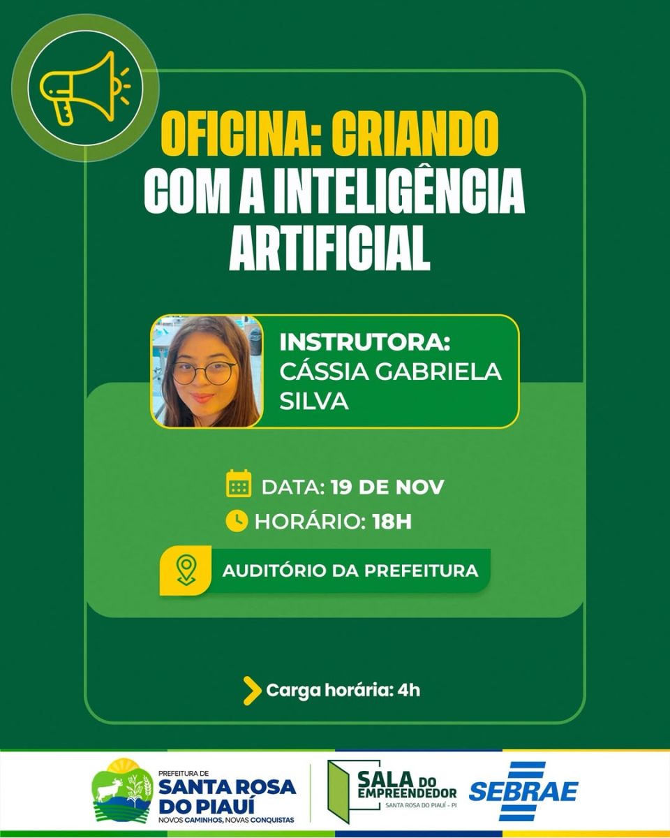 A Sala do Empreendedor, em parceria com o SEBRAE e a Prefeitura de Santa Rosa do Piauí, promoveu a oficina “Criando com a Inteligência Artificial”, ministrada por Cássia Gabriela Silva.
