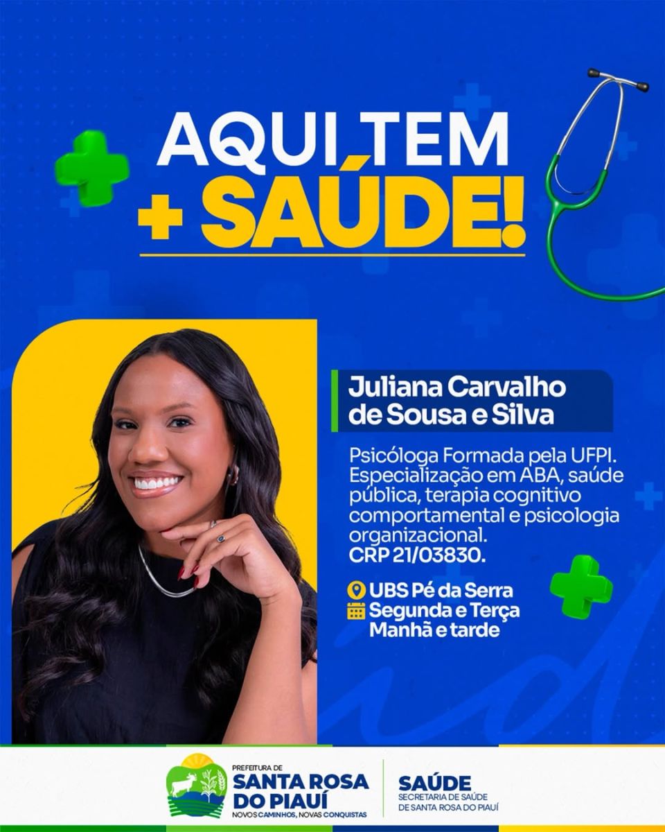 A profissional passa a atender a população às segundas e terças-feiras, nos turnos da manhã e da tarde, garantindo mais acesso ao acompanhamento psicológico e fortalecendo a rede de atenção básica no município.